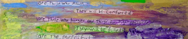 To convey my understanding of the nature of Jesus’ beattitudes found in Matthew 5:1-12, I decided to create a piece of visual art. Begin with a blank white board (here, pastel board.) Write the verses, or any important message across the board. Cover the entire surface with beautiful, opulent, shiny, brilliant colors – use heavy […]