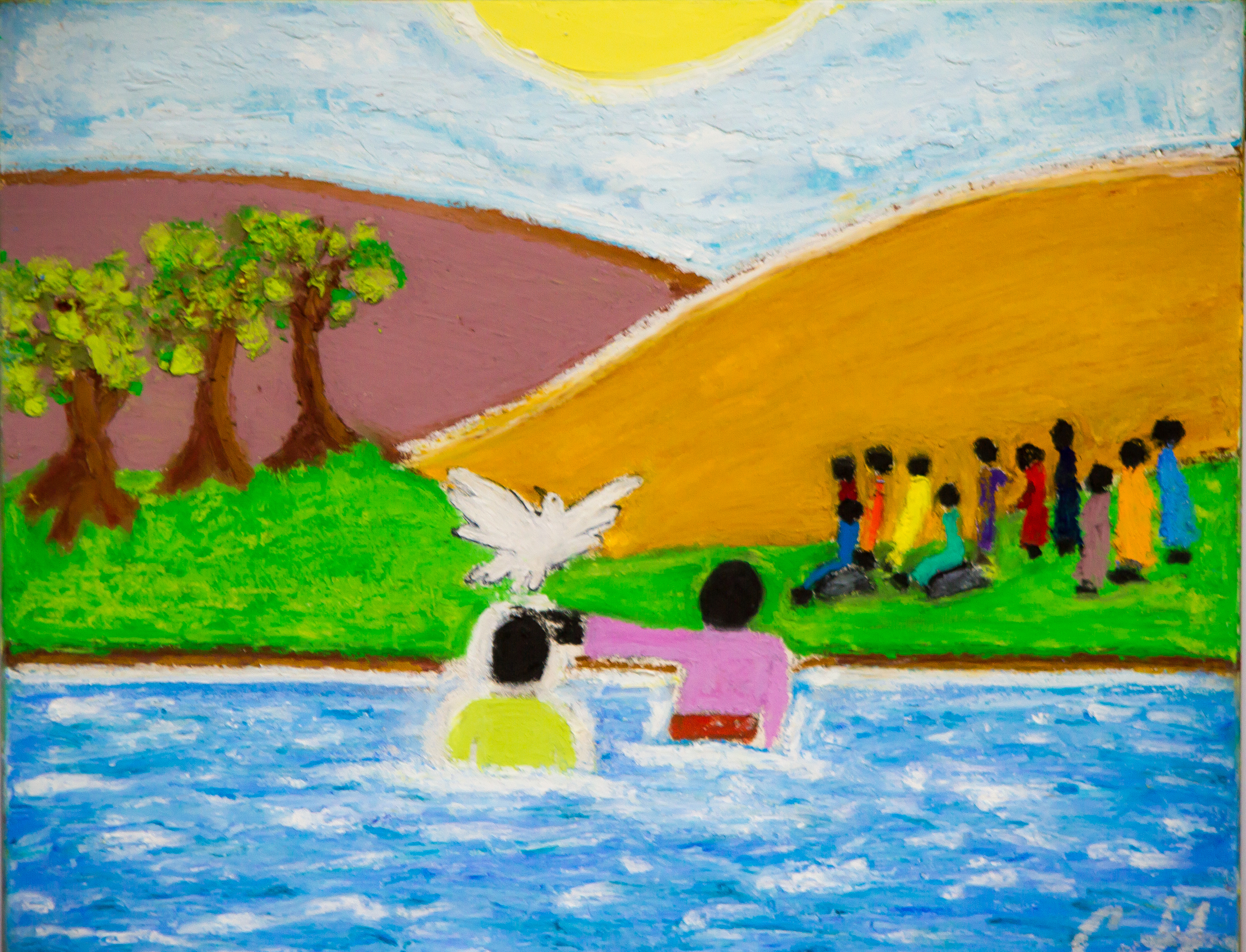 Jesus’ Baptism – Oil Pastel, © Chris Heckert 2013